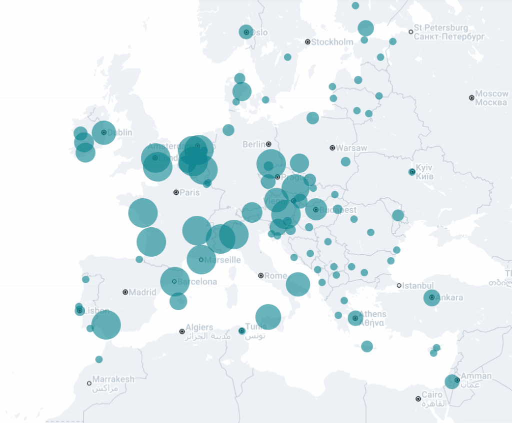 Explore the map or use the drop-down menus to see what and how food is being shared within cities around the world. Scroll below the map to get more details about the food sharing activities matching your search.